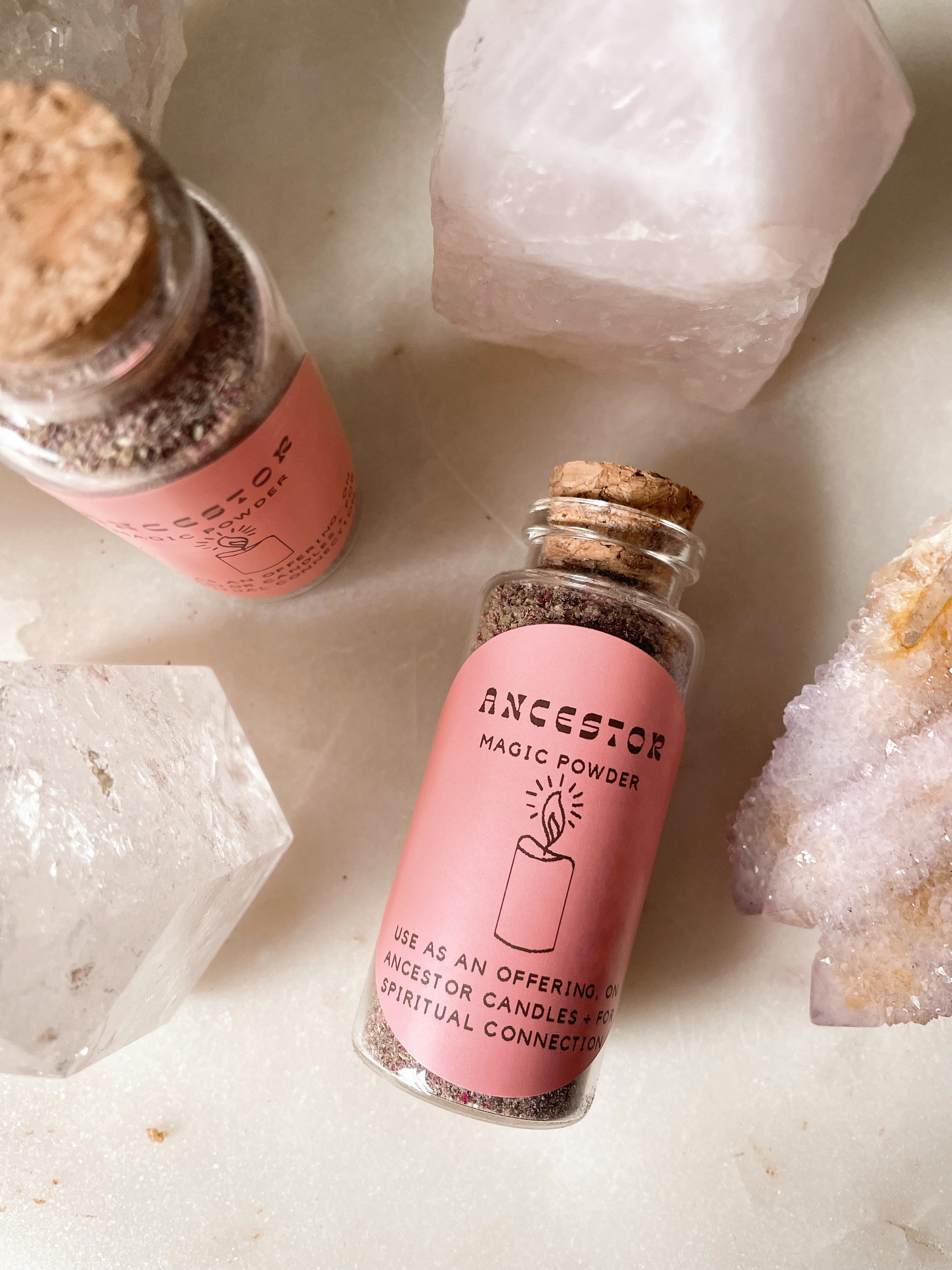 We love using this Ancestor powder as a way to connect to our Ancestors + for use as offerings. Add to a salt bowl on your ancestral altar, or use to anoint candles, add to oils, or burn as incense.