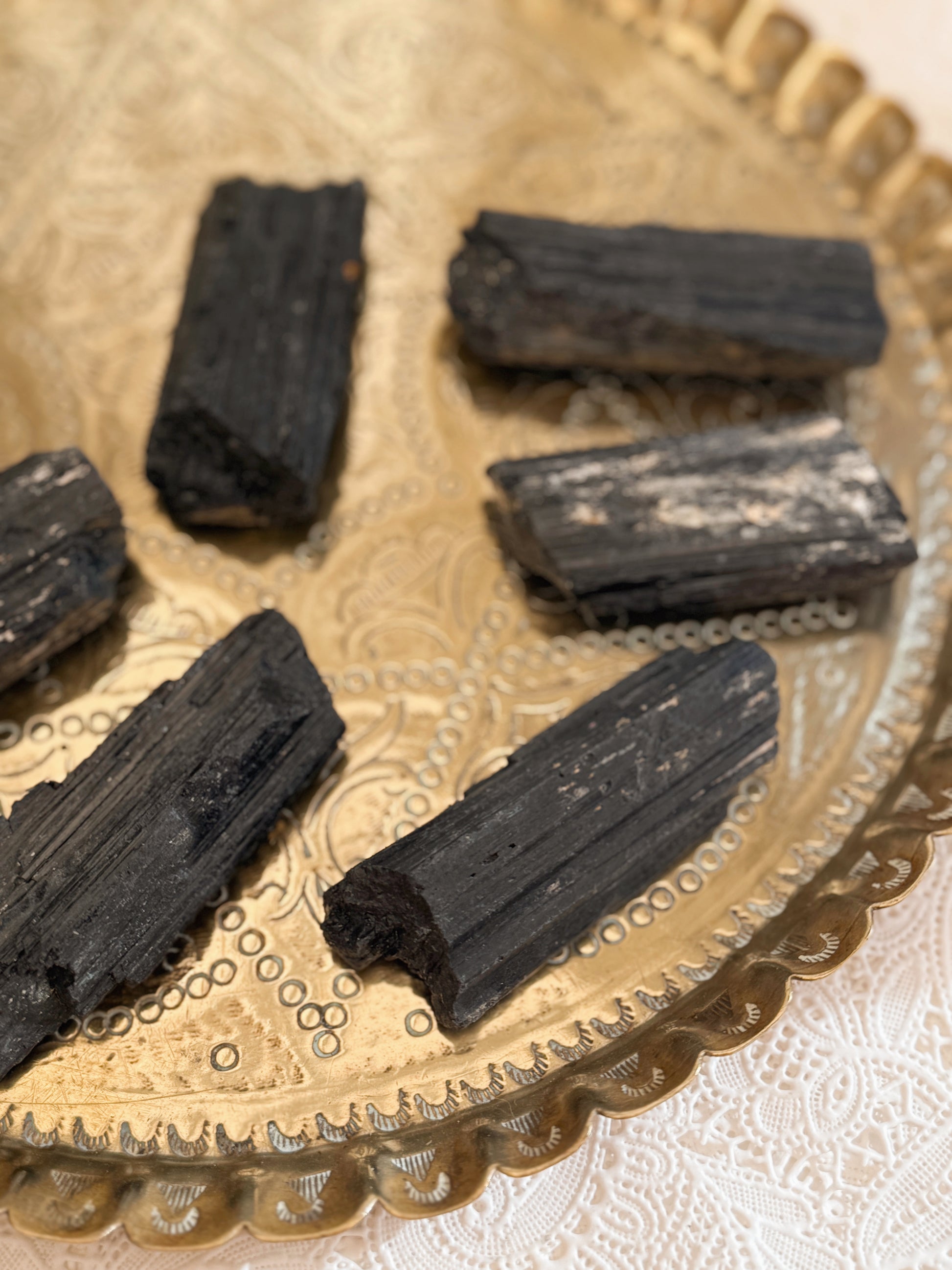 Defend your space with the grounding energy of raw Black Tourmaline. Known as one of the most powerful protective stones, black tourmaline acts as an energetic shield, absorbing and dispelling negativity while promoting stability and balance.