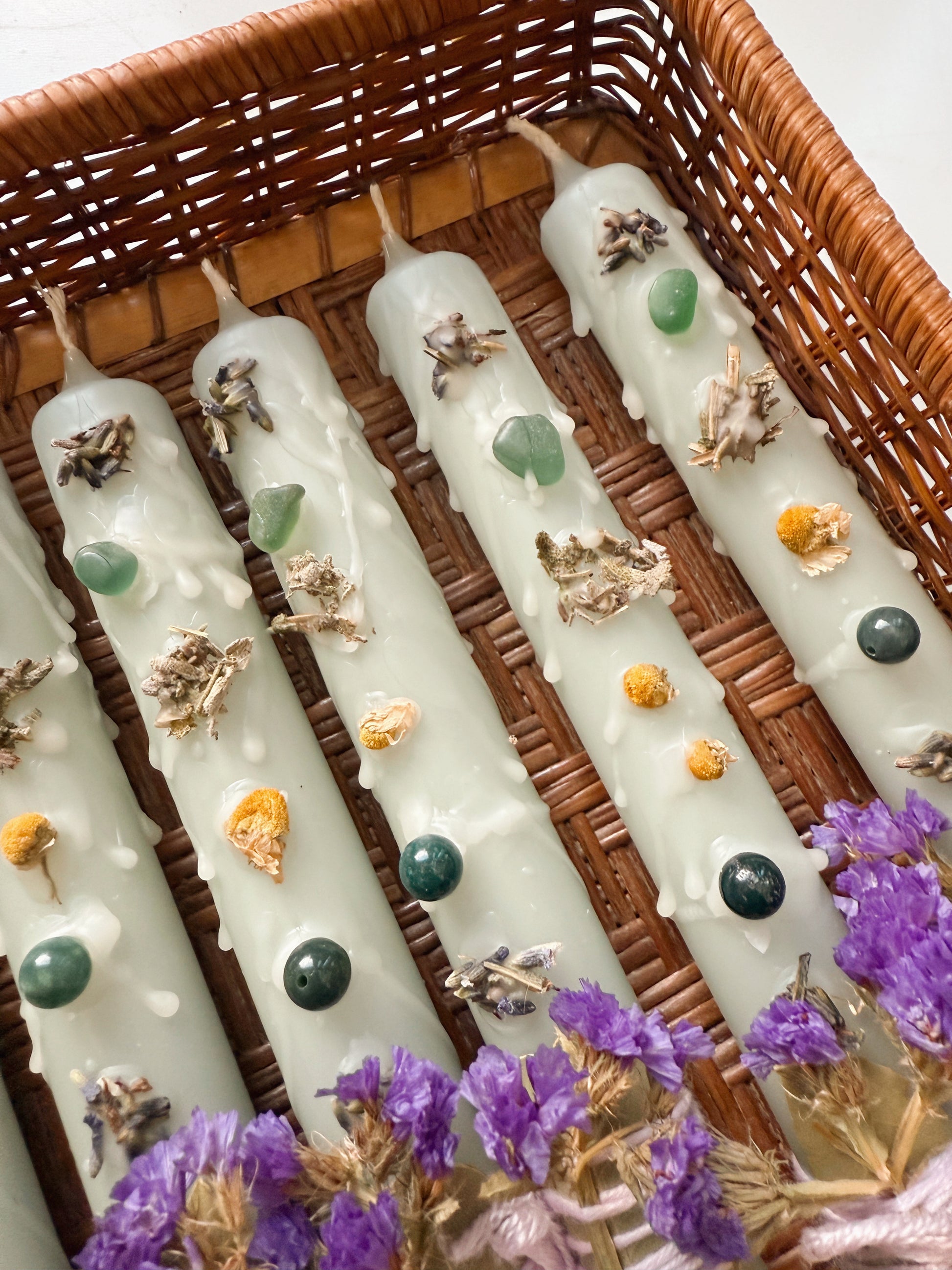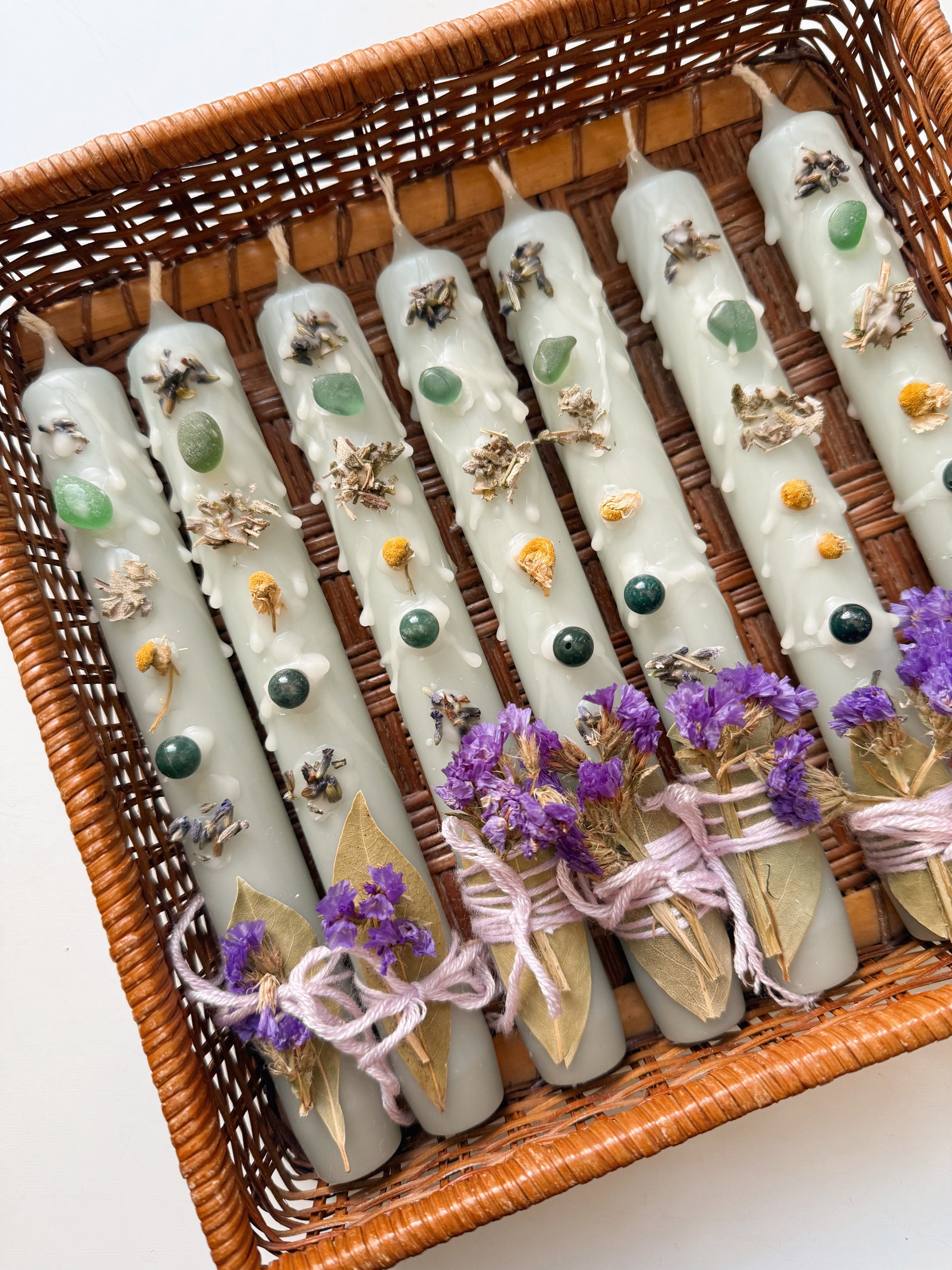 Our first sabbat of the wheel of the year is approaching, with Imbolc a time to focus on renewal, rebirth, transformation and growth. Our Imbolc candles have been created to bring in abundance and new beginnings, dressed in all herbs, florals and crystals associated with Imbolc.