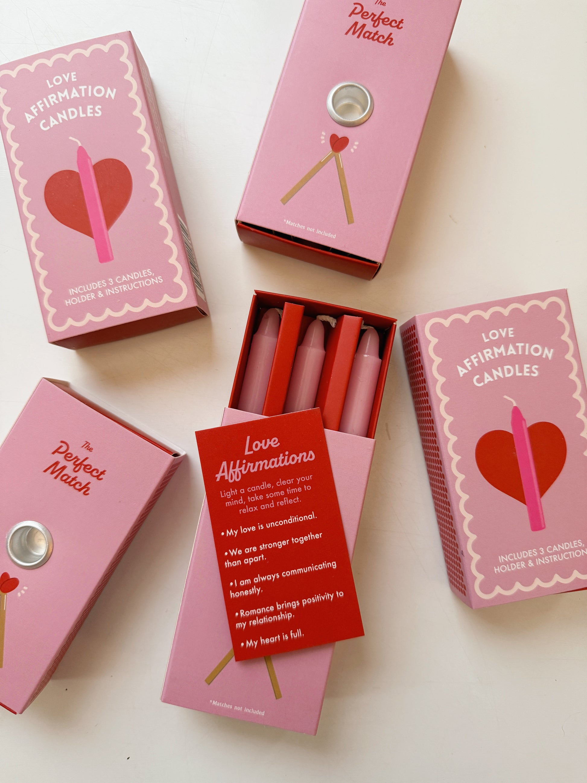Wonderful little set of 3 pink candles, in a match box style box which doubles up as a candle holder! Also comes with a set of affirmations to use whilst burning the candles.