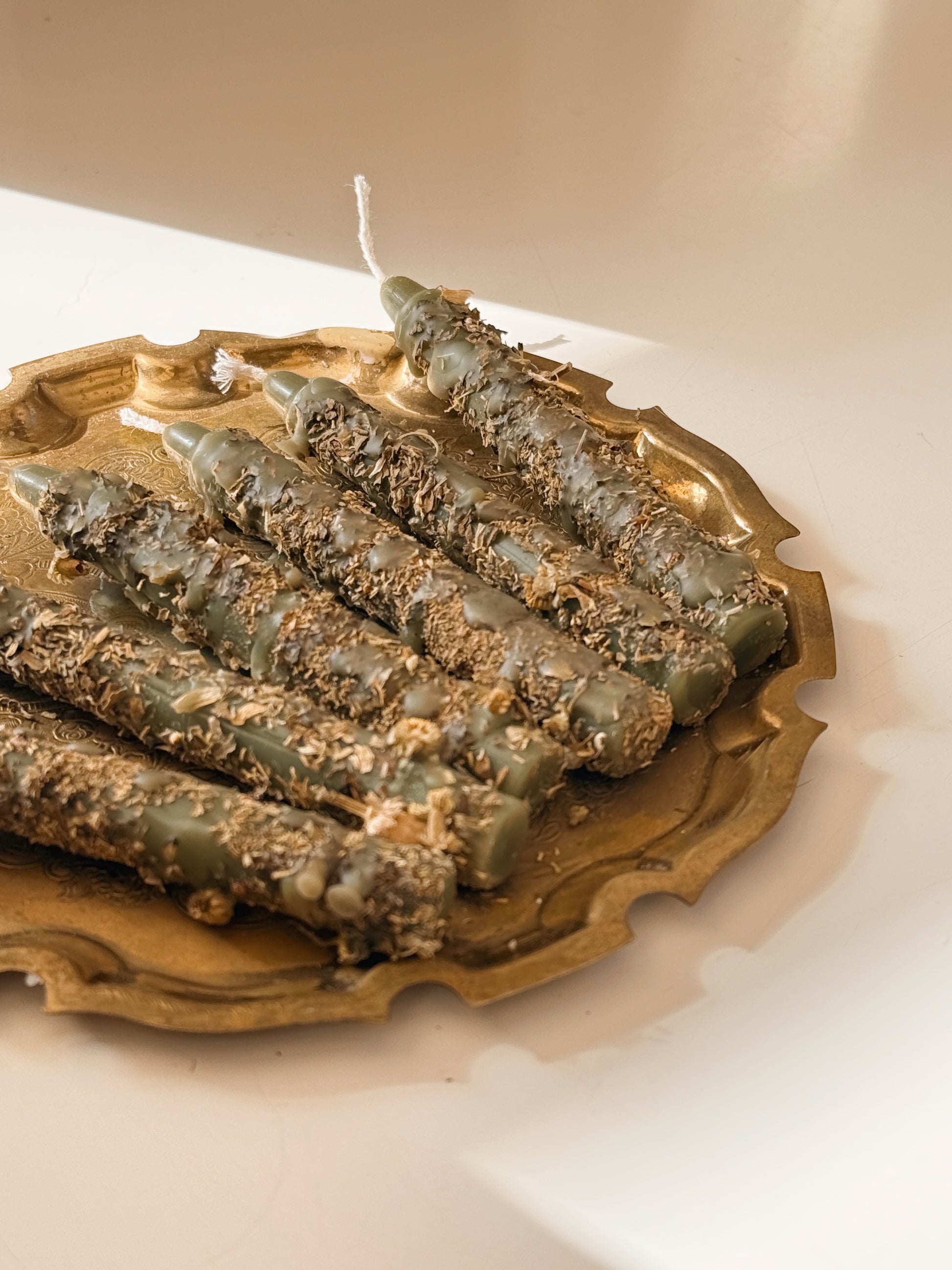 ✨Be aware that these candles are dressed with dried herbs, so there may be some fallout during burning and the flame may be high. Please use proper fire safety when burning, keeping away from children and pets and keeping your area well ventilated.