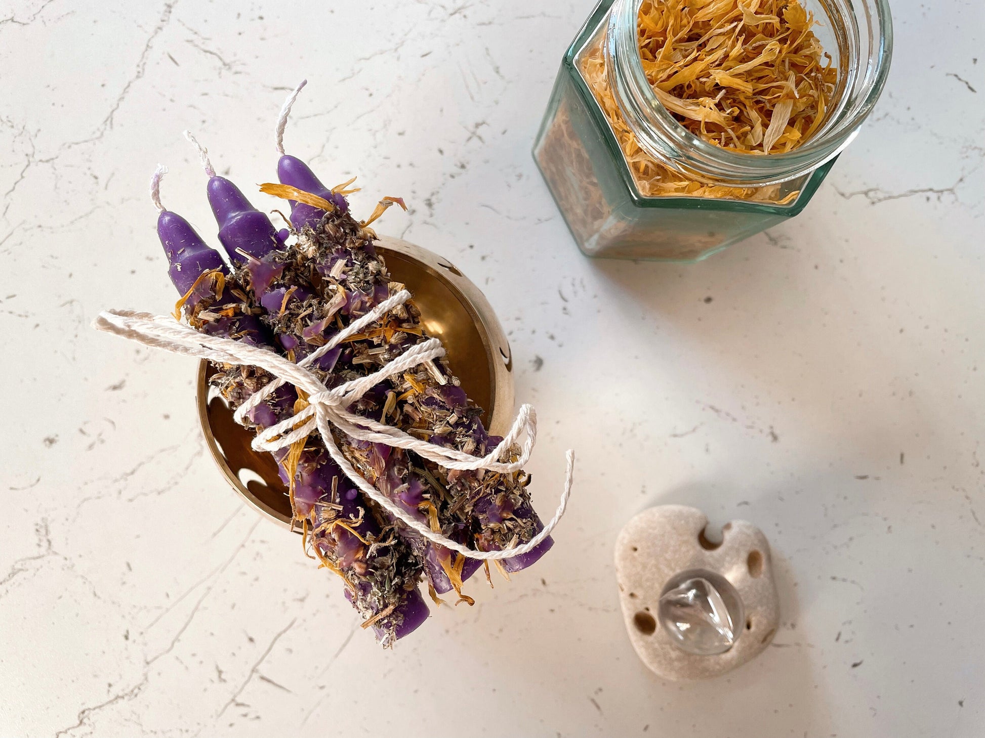 ✨ Please practice fire safety with these candles; they are heavily rolled in herbs and therefore the flame may burn higher and there may be falling embers. We include a fire safety card and salt for burning the candles in with every order.