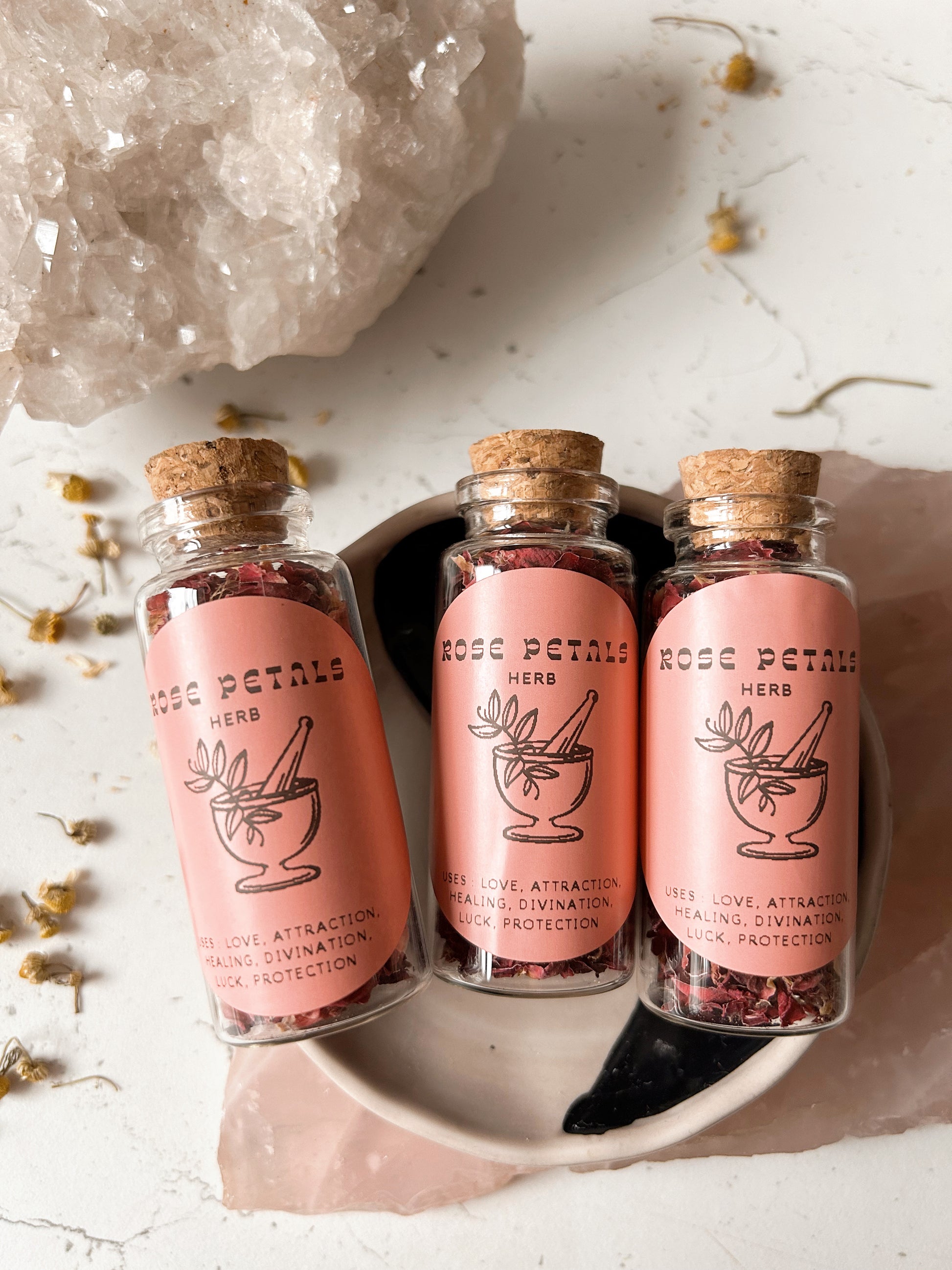 Dried Rose petals herb; you will receive one jar, sized 30ml 30mm x 70mm.