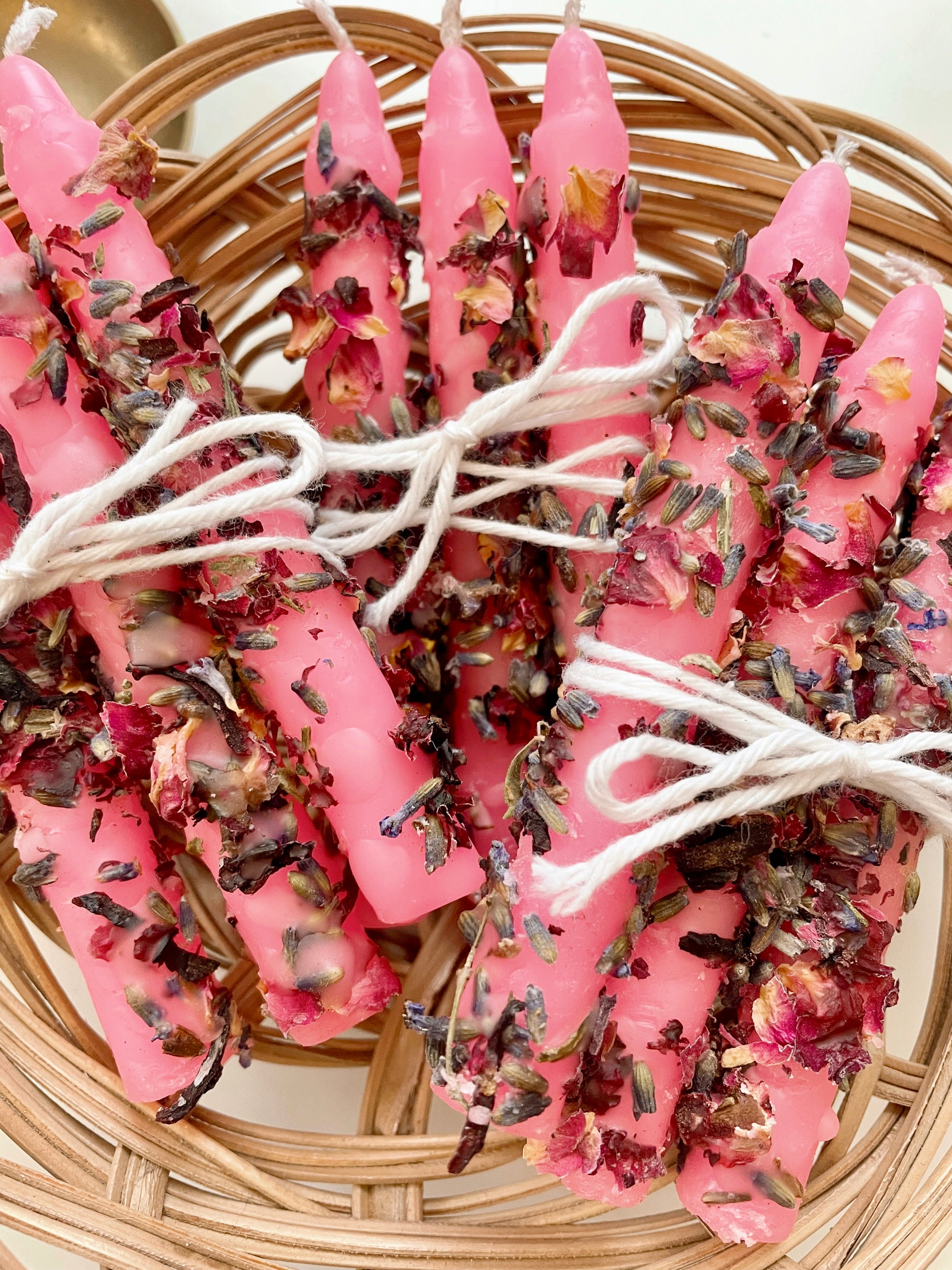 Add our Self Love spell candles to your self love rituals! Handrolled with herbs and florals to boost feelings of self love + emotional wellbeing.
