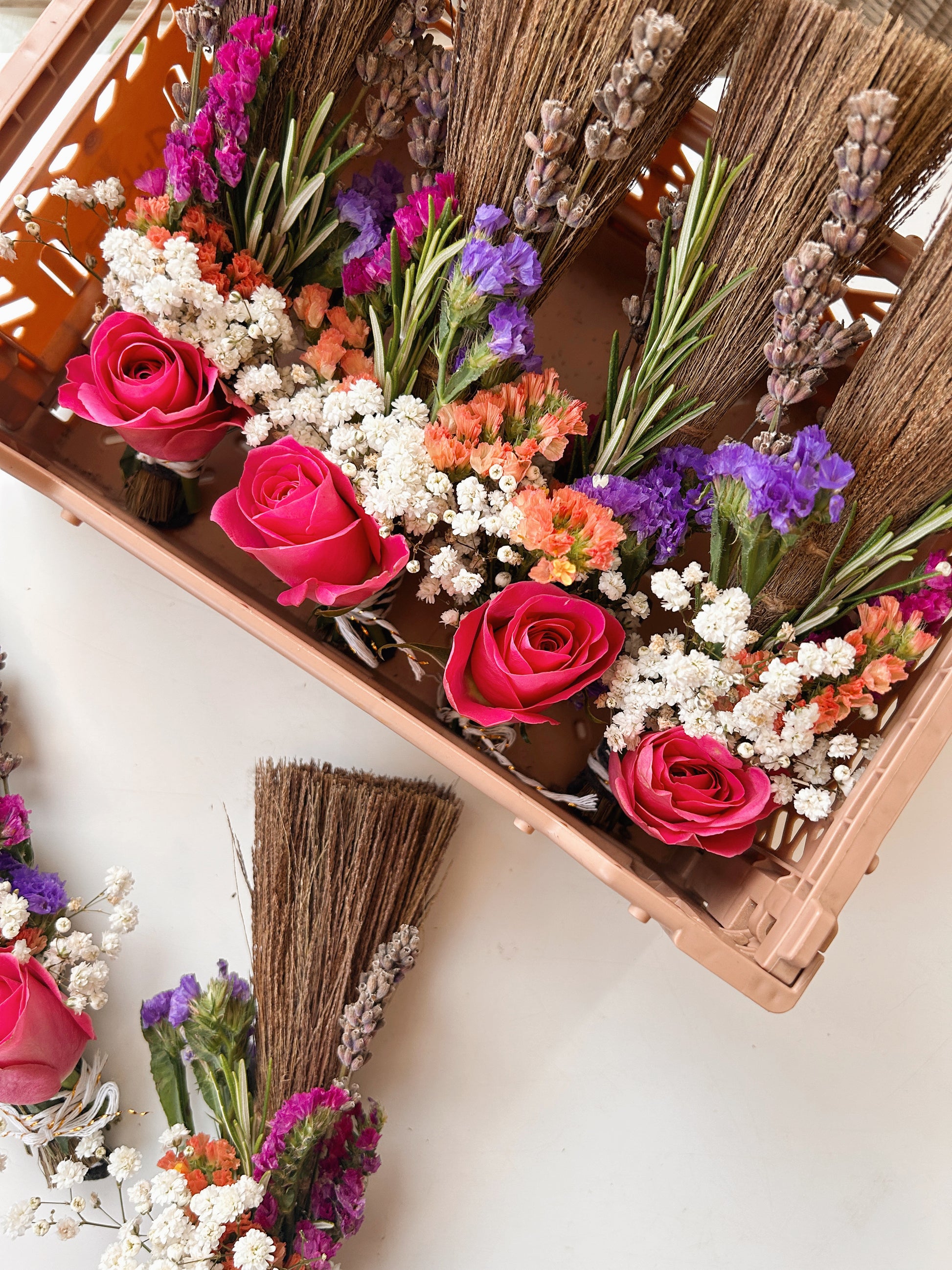 Please note that these brooms have been pictured freshly made; they will be left to dry out and will look slightly different once dried.