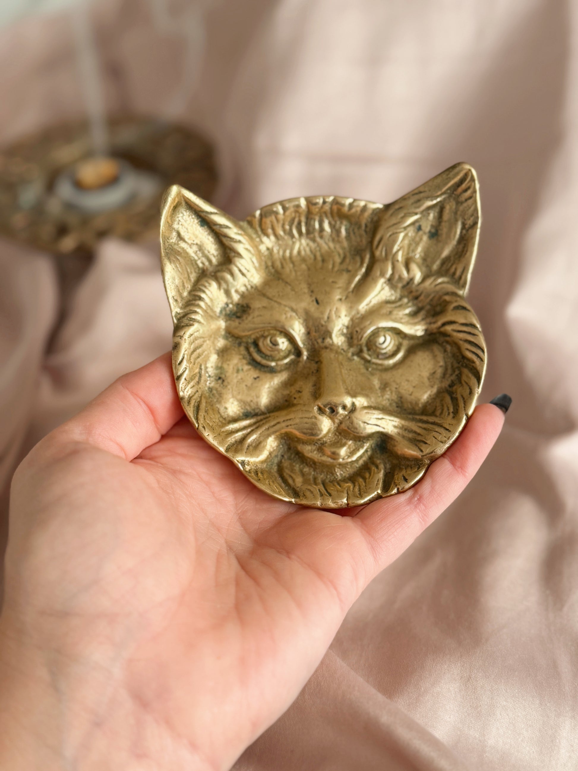 Adorable vintage solid brass trinket dish, in a cute cat-face design! Lovely piece to store a few crystals.