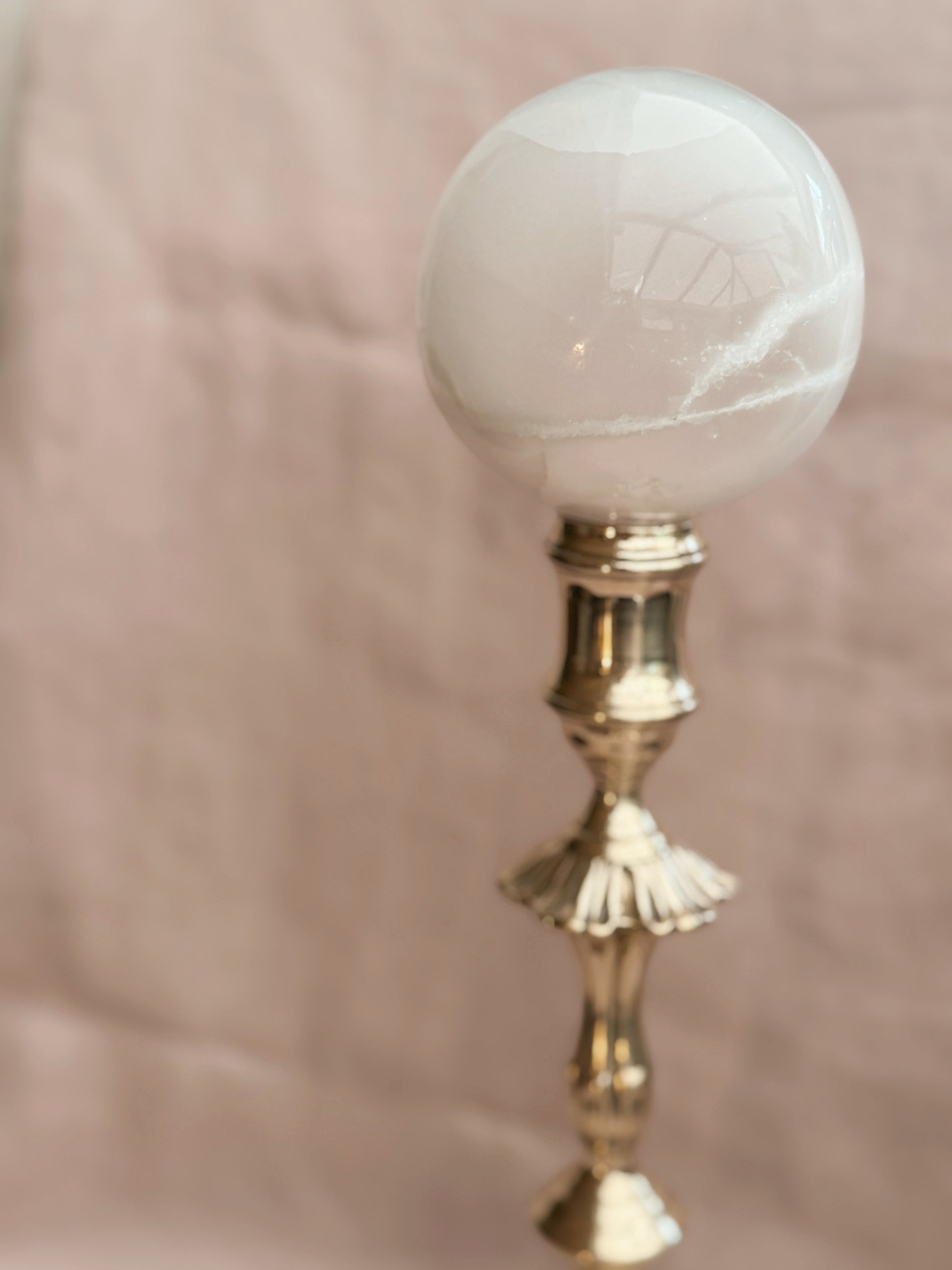 Beautiful vintage brass candlestick holder,r with an ornate design to the stem and large base at the bottom. Lovely altar addition for candlesticks or crystal spheres!
