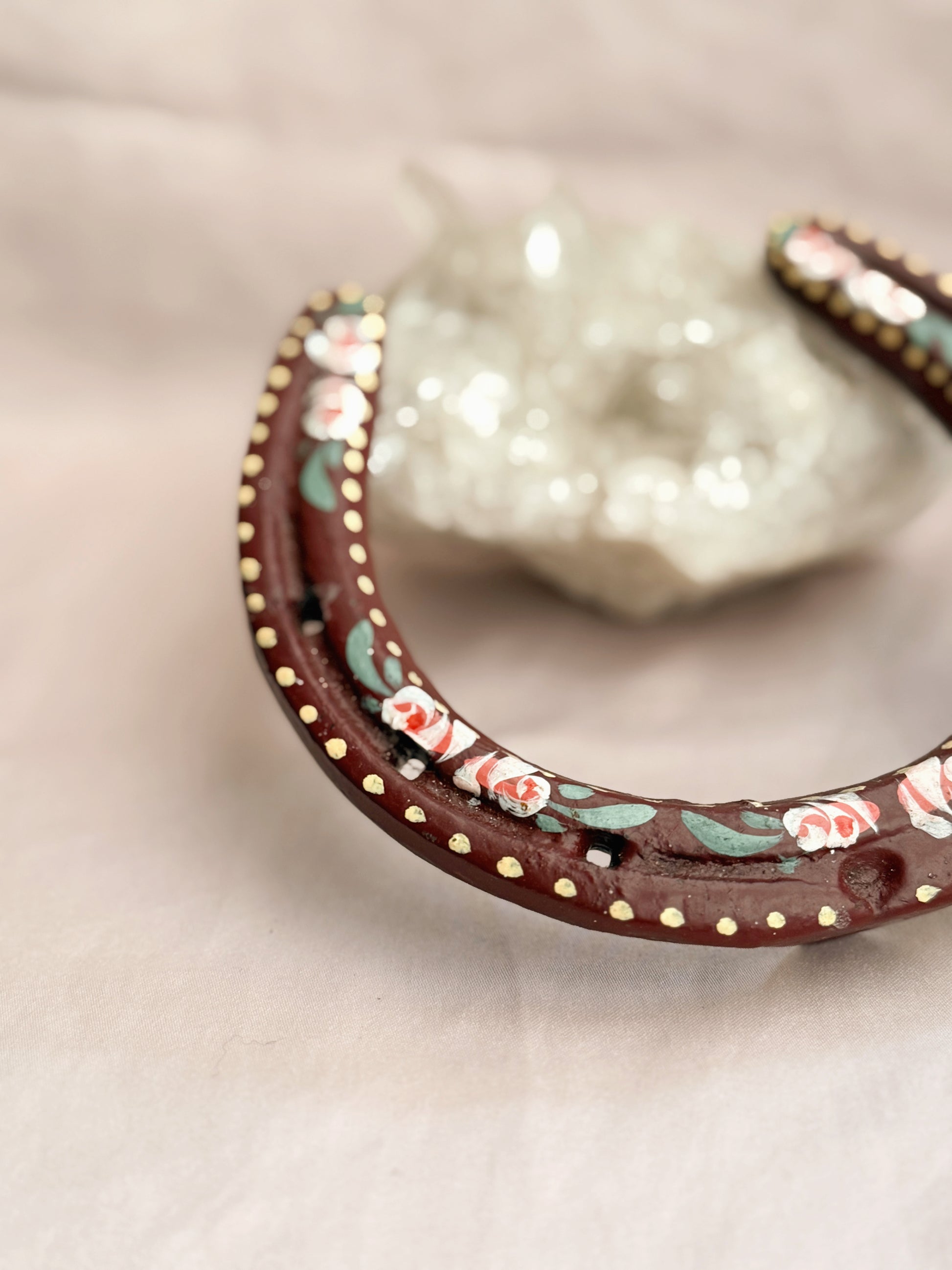 Lovely vintage iron horseshoe, with a painted floral design covering! Keep by your front door for good luck + protection.