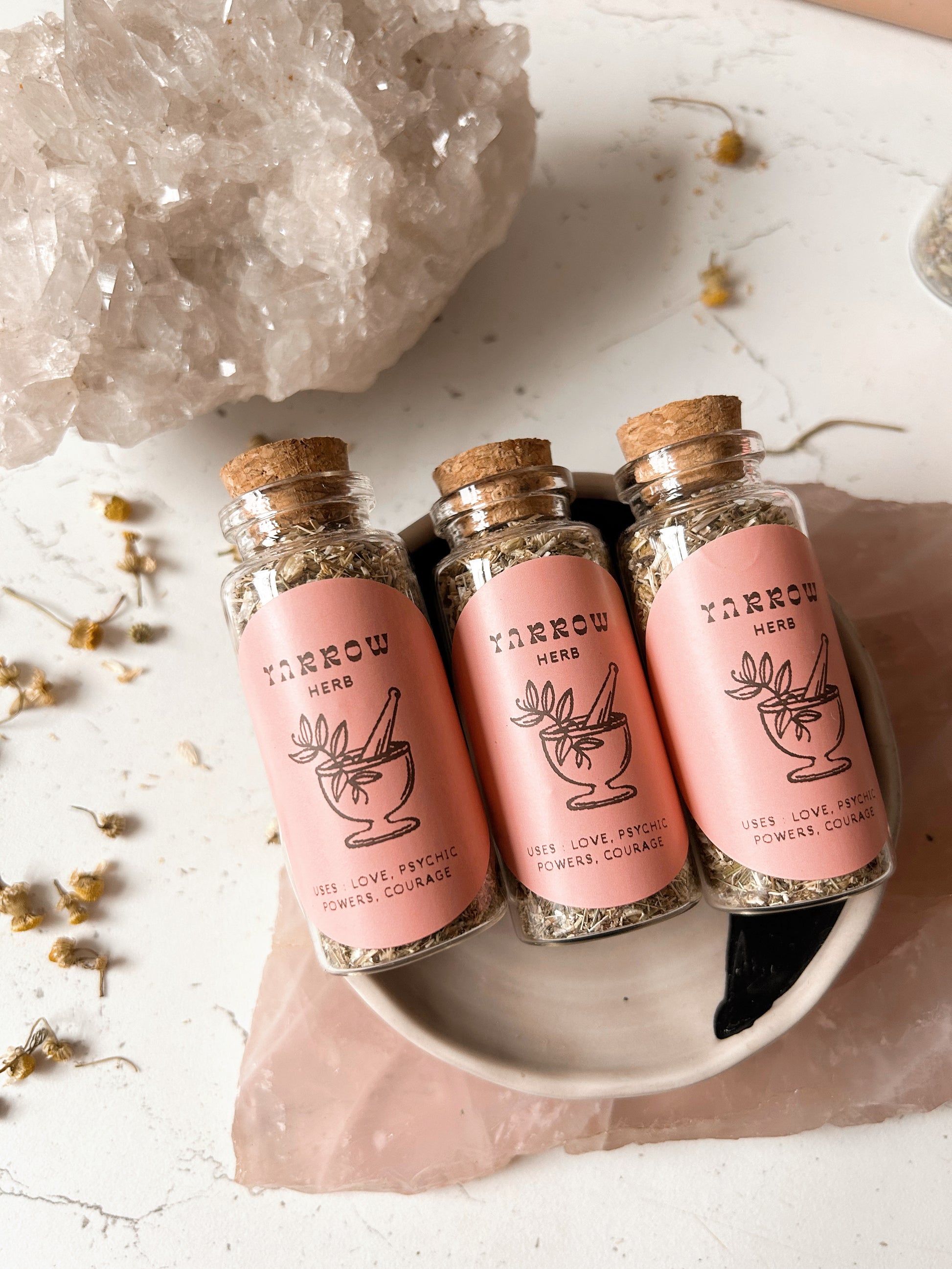 Dried Yarrow herb; you will receive one jar, sized 30ml 30mm x 70mm.
